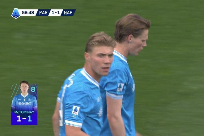 此役客场对阵帕尔马,麦克托米奈在比赛第60分钟破门为那不勒斯扳平比分。